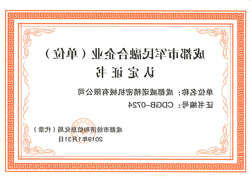 成都市军民融合企业(单位)认定证书